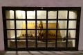 Kirchenmodell mit 2 Türmen: Otmar baut die Einsiedelei und kleine Kirche des Gallus zu einem Kloster aus. Es blüht und gedeiht, wird von den fränkischen Königen reich beschenkt. Othmar kann das erste Heim für Aussätzige in der Schweiz bauen. Doch mit diesem Erfolg erweckt Othmar den Zorn der umgebenden Grafen. Man unterstellt ihm Betrug, ja sogar intimen Kontakt zu Frauen. Er wird gefangen genommen und auf die Insel Werd im Bodensee verbannt, wo er einsam und gedemütigt durch üble Nachrede, stirbt.